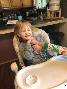 Speaking of furniture, you find great delight in pushing all of our dining room chairs around. Down the hallway. Over to the sliding glass door. Your brother says you are going to be a furniture mover when you are older. I guess we will have to see.